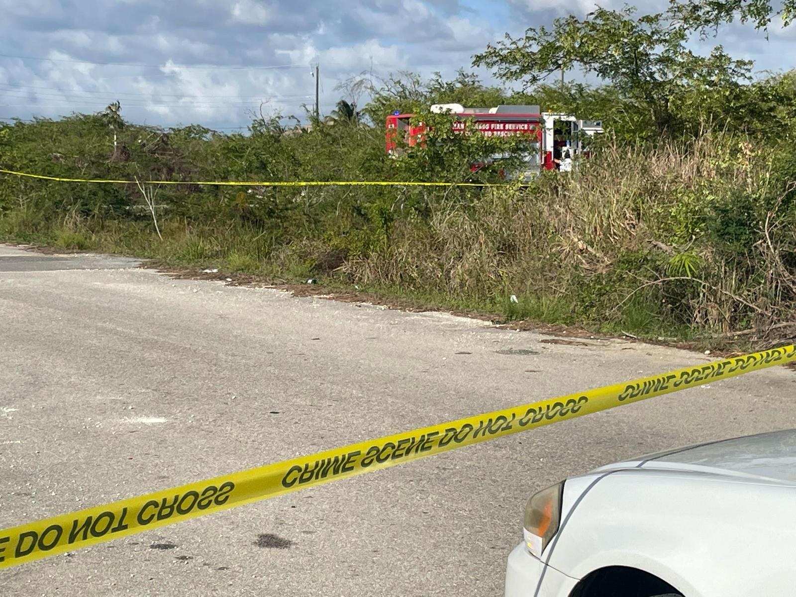 Police and fire officers found a dead body inside a vehicle on fire in an open lot in Bodden Town Thursday afternoon.