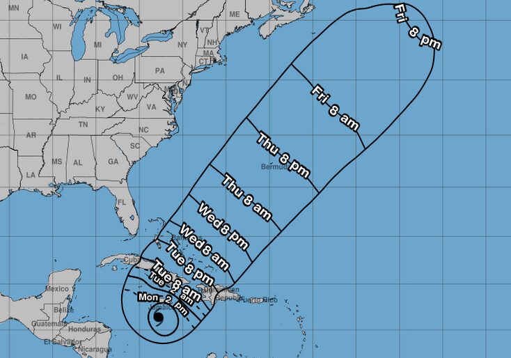 According to NOAA’s latest forecast, Melissa’s core is projected to move near or directly over Jamaica tonight and into Tuesday morning, then sweep across southeastern Cuba Tuesday night before reaching the southeastern Bahamas on Wednesday.