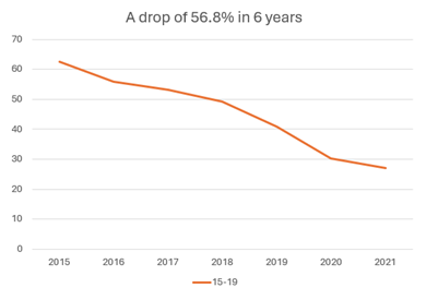 In just six years with this model, the adolescent fertility rate among teens 15-19 fell from 62.6 to 27, a drop of almost 57%. That is remarkable. This is what evidence-based health policy can accomplish.