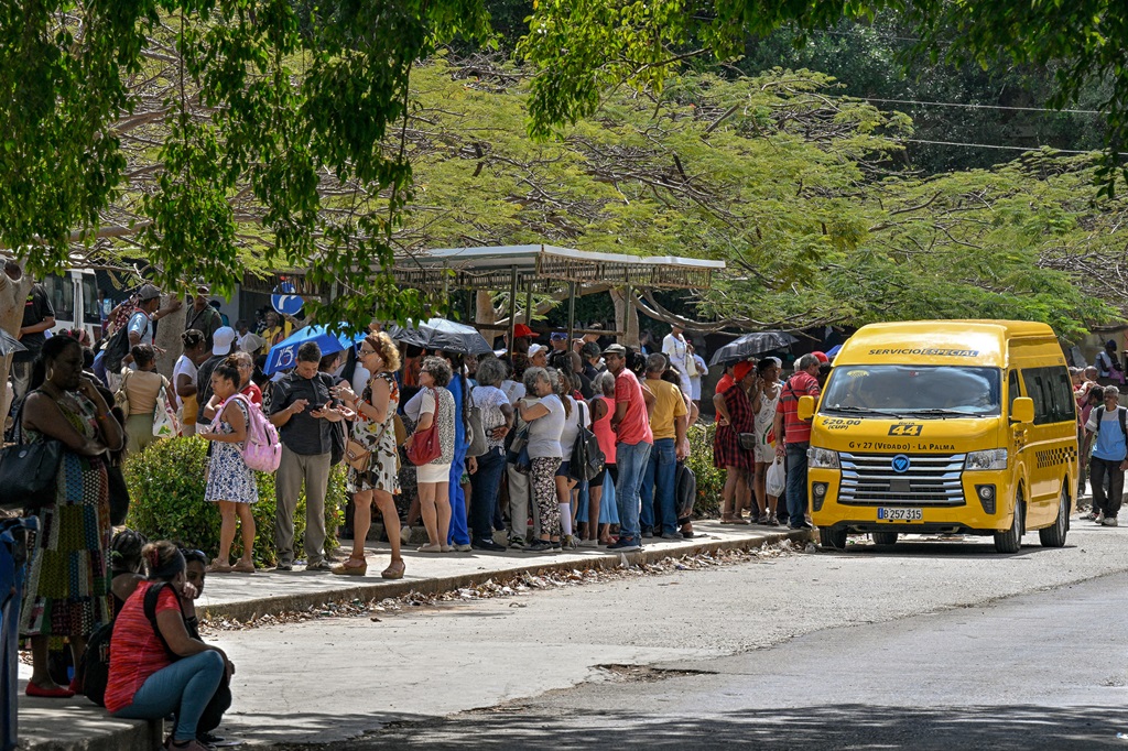 People wait at a bus stop in Havana during a blackout on March 16, 2026. Cuba suffered a widespread power cut on March 16, 2026, according to the national electricity company, against the backdrop of a severe crisis on the island caused by the US energy blockade. (Photo: AFP)
