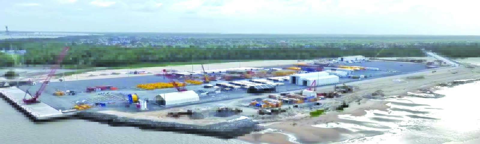 The US$300 million Vreed-en-Hoop shore base, a product of collaboration between local and foreign investors, is a 44-acre artificial island on the Demerara River. It serves as a critical port facility to support ExxonMobil Guyana’s offshore operations, providing space for SURF (Subsea Umbilicals, Riser, and Flowlines) projects.