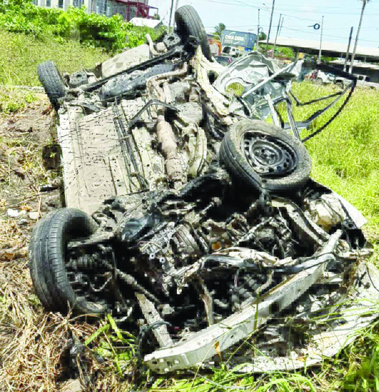 Reports indicate that Johnson A Field, Sophia, Greater Georgetown, was driving the motor car, PAL 2882, west along Aubrey Barker Road at a high rate of speed at about 01:50h when he lost control and crashed near the Mandela roundabout. Police on Thursday said that the vehicle collided with the concrete median and overturned several times before coming to a stop on the western parapet of the Nelson Mandela to Eccles Inter-Link Road. As a result of the collision, the driver and the front-seat passenger sustained injuries and were pronounced dead at the scene by a doctor, while the 12-year-old was rescued from the vehicle and transported to the Georgetown Public Hospital Corporation.