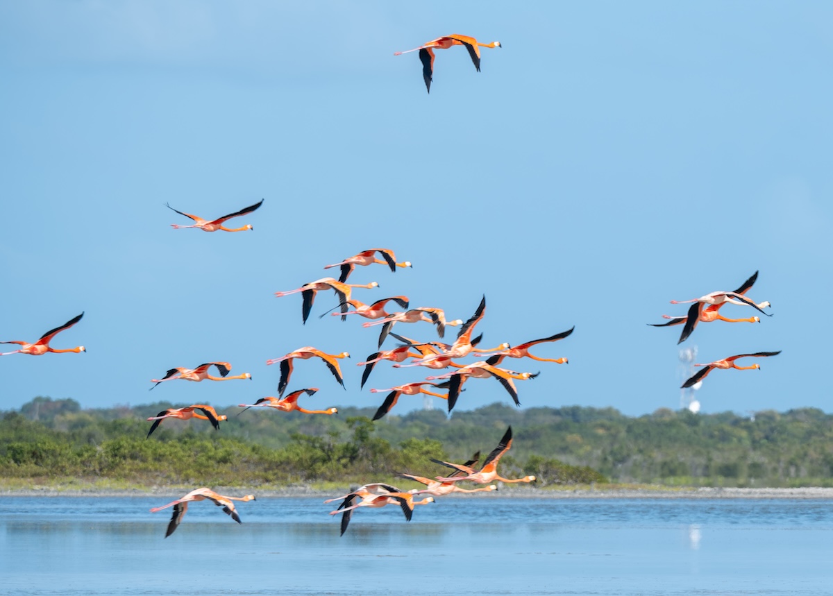 “I’ve seen [flamingos] flying low over the runway,” he said of the Beef Island airport, which is adjacent to a salt pond often frequented by the birds, adding, “Two or three years ago, there was a strike: An airplane, a small twin-engine airplane, hit a flamingo.”