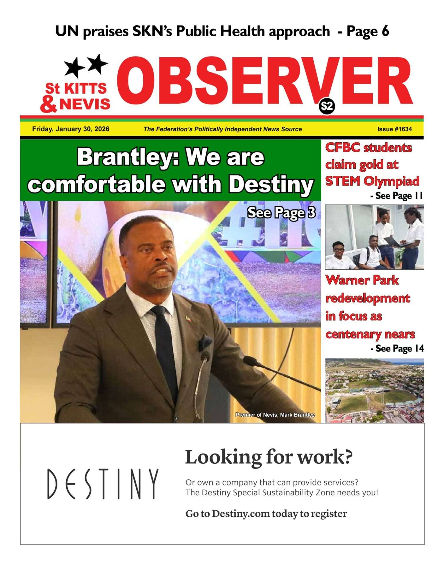 The post Front Page, January 30th, 2026 appeared first on The St Kitts Nevis Observer.