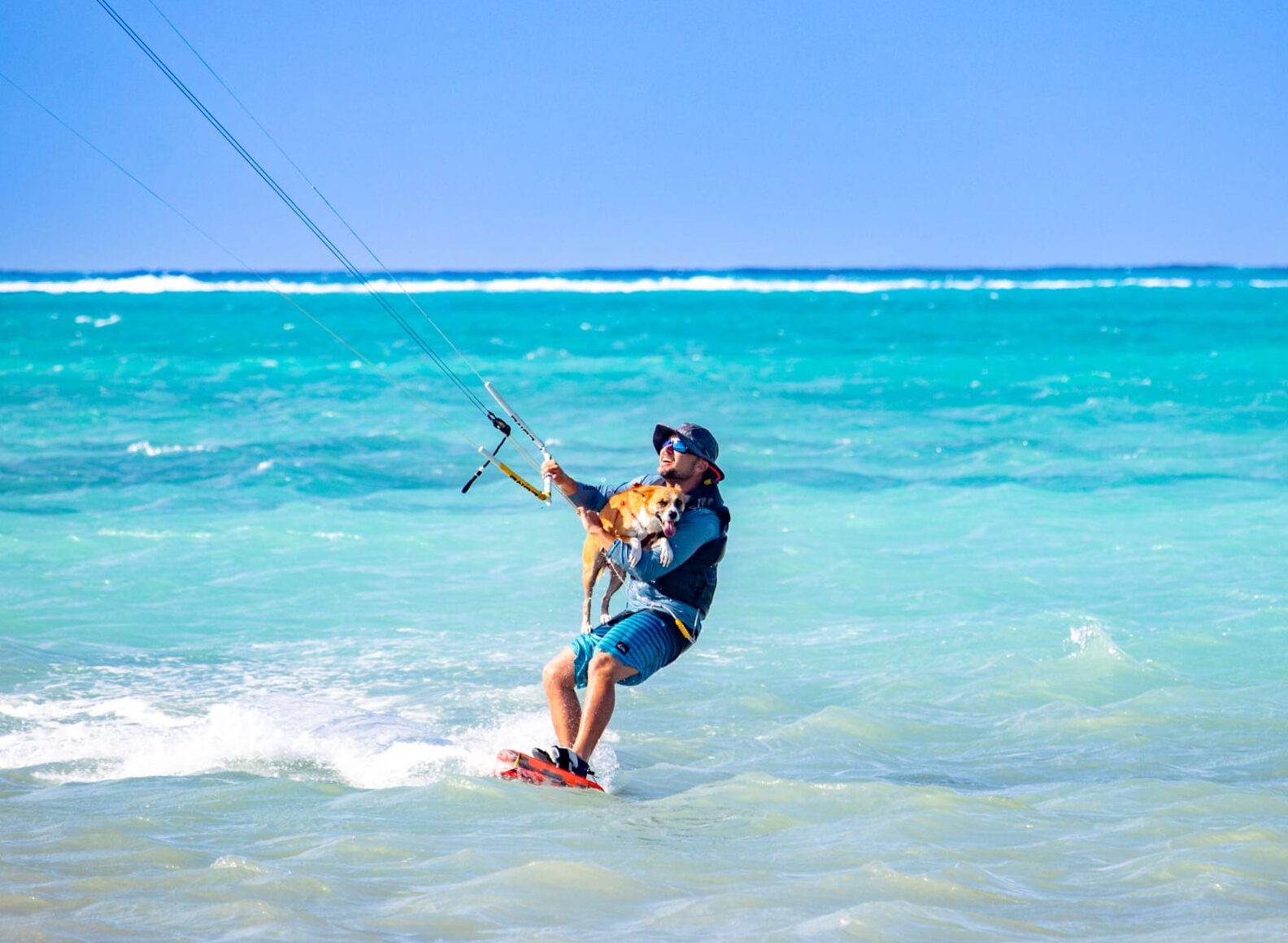 Jack, a rescue dog from One Dog at a Time, has become a viral sensation in Cayman because of his love for kitesurfing.