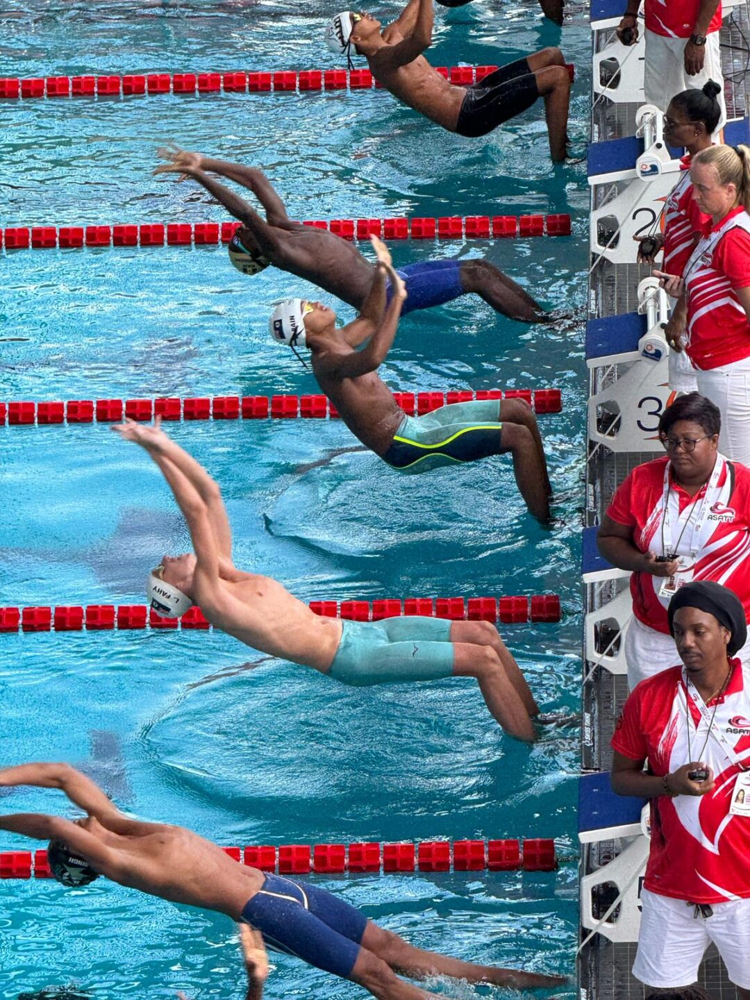 Across the first three days of competition, he also teamed up with fellow age groupers Eli Bain, Lennox Turnham-Wheatley – himself a seven-time medallist in Trinidad – and Gabriel Bispath to snag wins in the 4x100m medley and 4x200m freestyle relays, as well as a silver in the 400m freestyle relay.