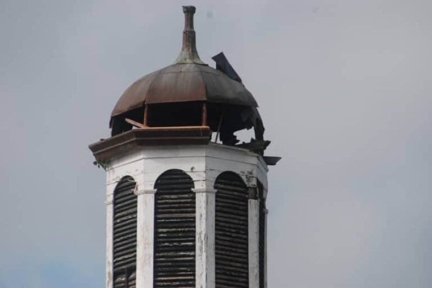 We schrijven al drie jaar over de beschadigde koepel op het zogeheten Torengebouw aan de Tamarindelaan, pal tegenover het Onafhankelijkheidsplein. Beschadigd geraakt door een zeer brutale diefstal van de koperen platen van de koepel, ofschoon er bewaking was en is bij het ministerie van Natuurlijke Hulpbronnen en het Presidentieel Paleis.