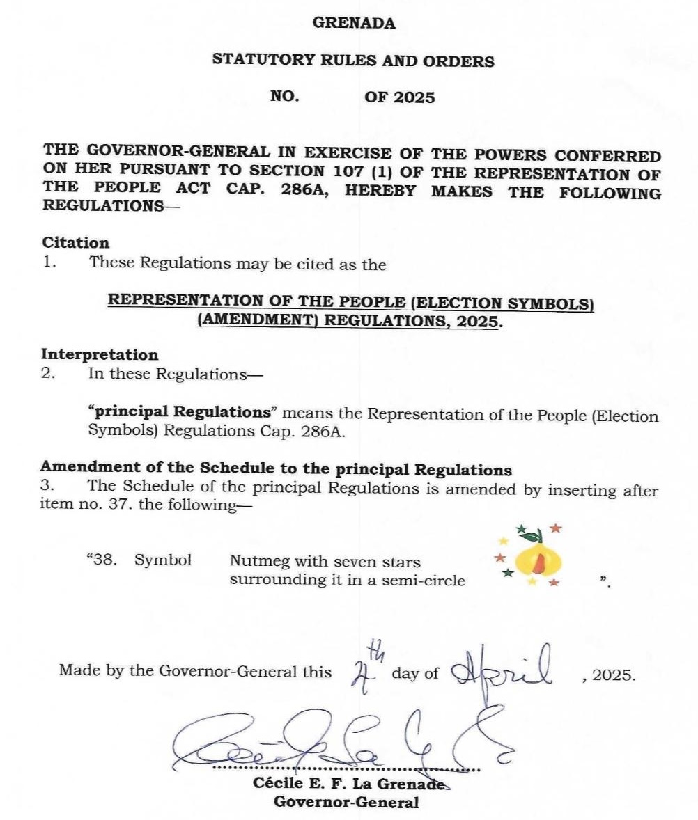 A nutmeg with 7 stars in a semicircle is the 38th symbol approved by the Lower House of Parliament to be used on the ballot paper for any election in the future.