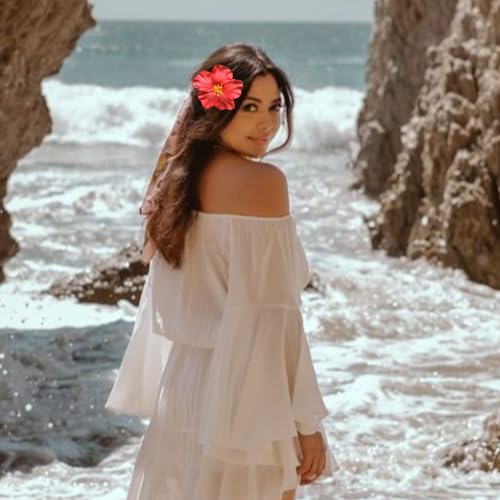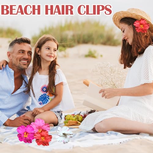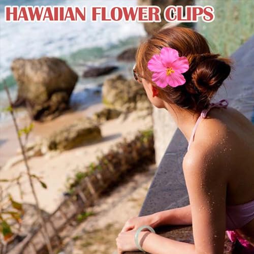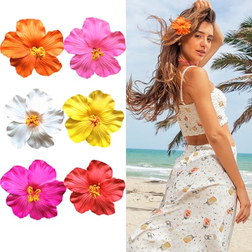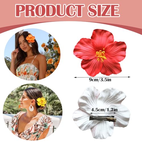 Hawaiian Flower Hair Clips: You will receive 6 pieces of Hawaiian flower hair clips in white, yellow, red, orange, rose and pink. The hibiscus flower clips are colorful and gorgeous, perfect for summer beach trips. There are enough to share with family and friends