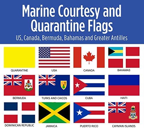 Set of 12 Marine Courtesy and Quarantine Flags for US, Canada, Bermuda, Bahamas and Greater Antilles. This set has you covered from Canada to Puerto Rico, for a fraction of the cost of others. These flags are 12″ x 18″ in size, made of the best polyester fabric available, resistant to fading and yet are affordable. Comes with reinforced sleeve and stainless steel grommets. We get you, we are cruisers too. We help your cruising dollars go further. This set includes a Quarantine flag and Courtesy flags for: ✔ United States