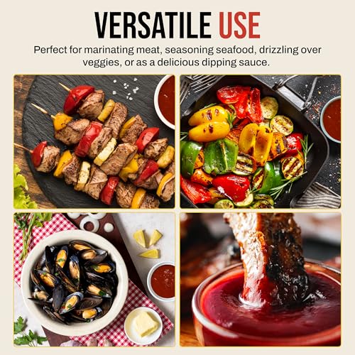 Versatile Usage: Grill, dip, drizzle, or marinate – perfect for meats, seafood, veggies, and even cheese and crackers.