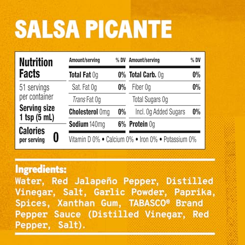 TABASCO Salsa Picante is a rich and thick Mexican-style hot sauce that features a vibrant spice blend and a subtle kick of heat. Available in an easy-to-squeeze bottle, this irresistibly delicious sauce was made to make your favorite Tex-Mex dishes even more craveable.
