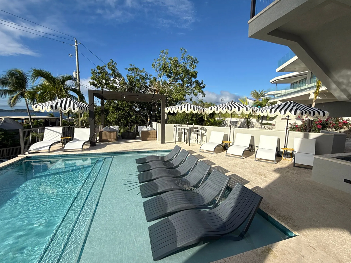 The signature moment here happens in the late afternoon. As the sun begins to dip, guests drift toward the pool deck, cocktail in hand, settling into cushioned loungers while the breeze moves through the palms. Cruz Bay hums beyond the walls, but inside The Saint it feels unhurried and grown-up.