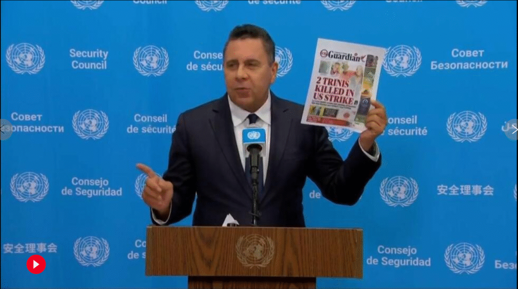 LAS CUEVAS, Trinidad (AP) — Venezuela’s ambassador to the U.N., Samuel Moncada, condemned on Thursday a recent U.S. strike on a small boat in Caribbean waters that killed six people, calling it “a new set of extrajudicial executions.”